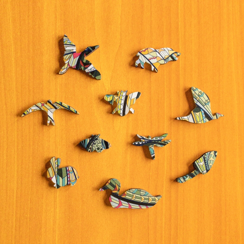 Nielenže má každý kus iný tvar, ale každá skladačka obsahuje aj tvary rôznych zvierat, rastlín a kvetov.
