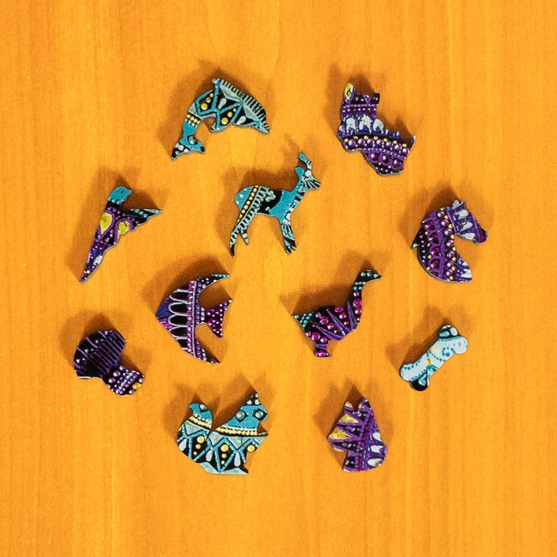 Nielenže má každý kus iný tvar, ale každá skladačka obsahuje aj tvary rôznych zvierat, rastlín a kvetov.