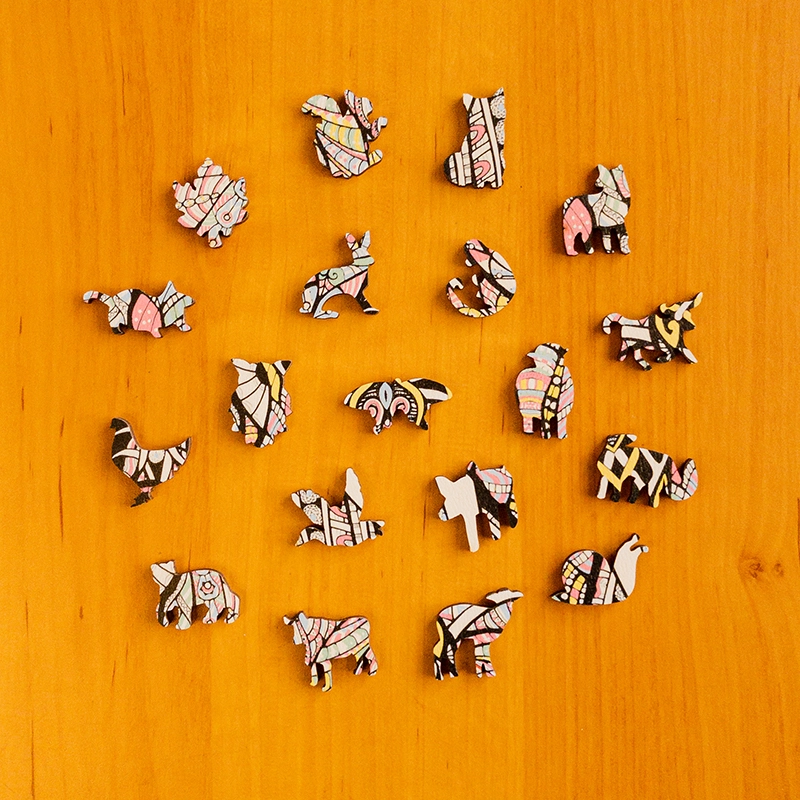 Nielenže má každý kus iný tvar, ale každá skladačka obsahuje aj tvary rôznych zvierat, rastlín a kvetov.